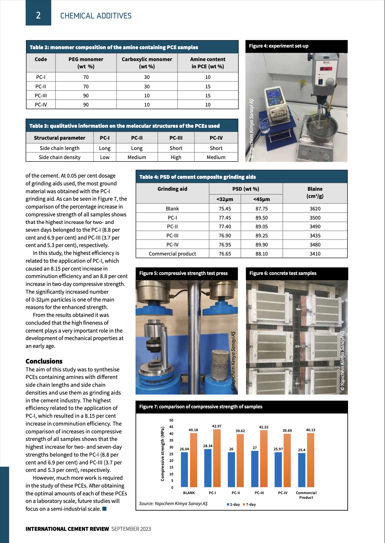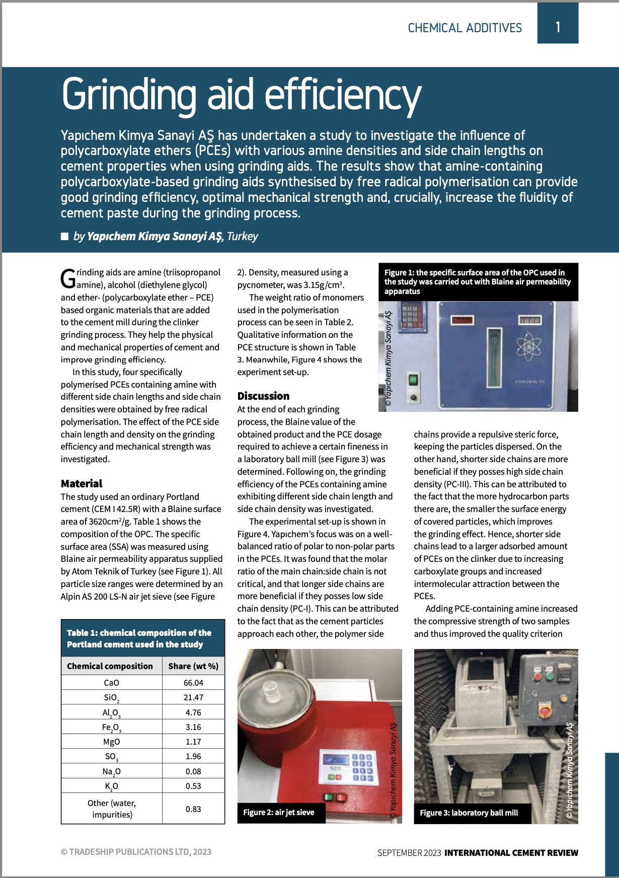 "Amin İçeren Polikarboksilat Esaslı Öğütme Yardımcısı Hazırlanması ve Çimento Özelliklerine Etkisi" konulu makalemiz International Cement Review dergisinin Eylül 2023 sayısında yayınlandı.