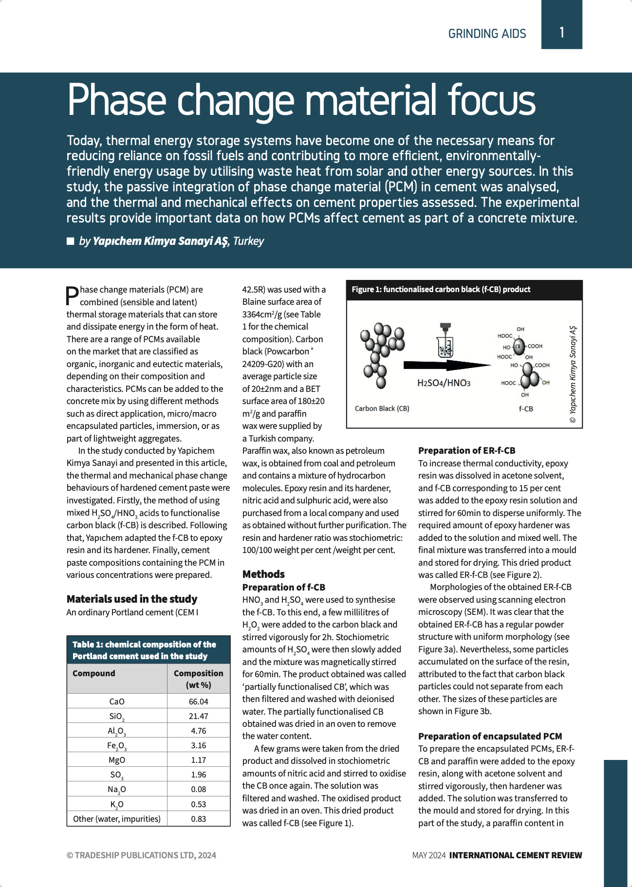 "Faz Değiştiren Malzemelerin Çimentonun Özellikleri Üzerinde Etkisi" konulu makalemiz, International Cement Review dergisinin Mayıs 2024 sayısında yayınlandı. https://www.yapichem.com.tr/userfiles/media/ICR-Mayis-2024-Yapichem-Makale.pdf